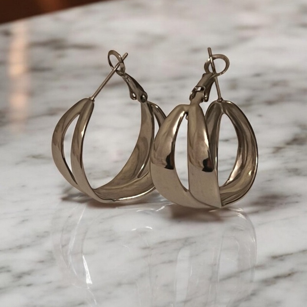 Ανέδειξε το στυλ σου με τους ασημί κρίκους σε έντονο ύφος και διπλή γραμμή έτοιμο να τραβήξει τα βλέμματα σε όποια στιγμή της ημέρας . Από ανοξείδωτο υποαλλεργικό ατσάλι που δεν μαυρίζει.