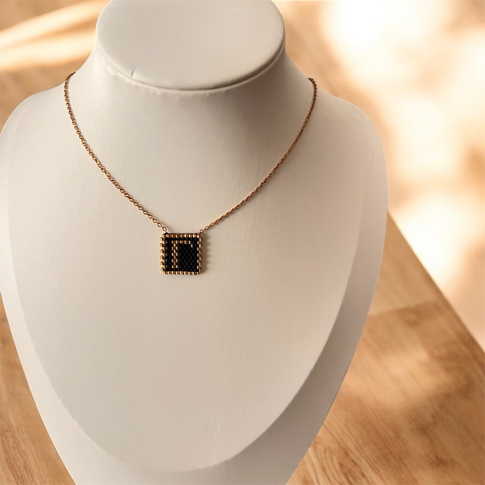 Ανέδειξε το στυλ σου με το τετράγωνο χρυσό κολιέ με το μονόγραμμα σου , ιδανικό για βραδινές και καθημερινές εμφανίσεις.Κατασκευασμένα από ανοξείδωτο υποαλλεργικό ατσάλι.