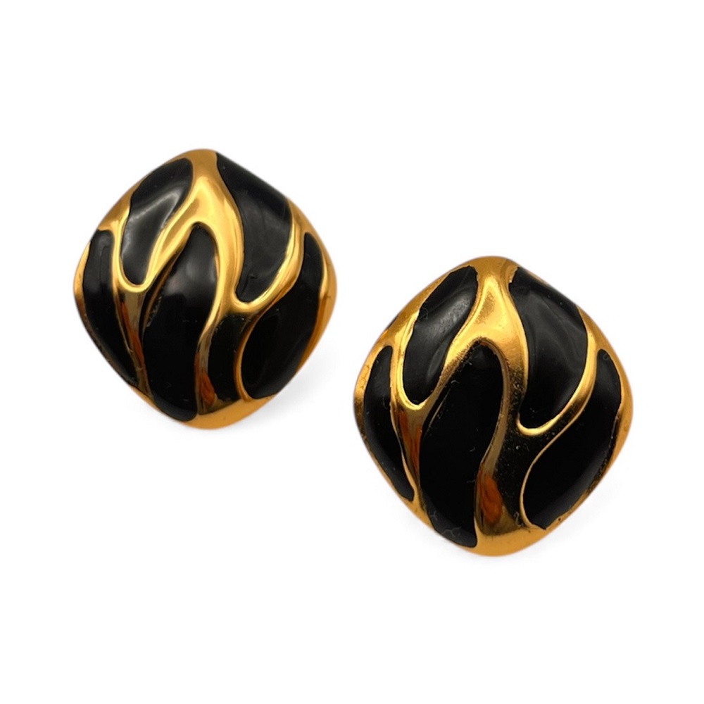Σκουλαρίκι με κυμματιστές λεπτομέρειες σε μαύρο και χρυσό.